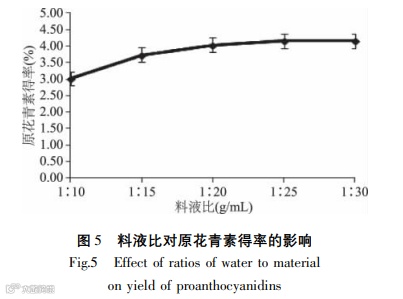 目的:黑果枸杞有极强的抗旱、抗寒和耐盐碱特性,其果实中含有大量的原花青素、花青素、多糖等成分,是理想的原花青素来源。原花青素是一种由黄烷-3-醇单体缩合而成的聚多酚类物质,本研究以新疆产黑果枸杞为原料,利用响应面设计优化原花青素的提取工艺,以获得更高的原花青素得率。