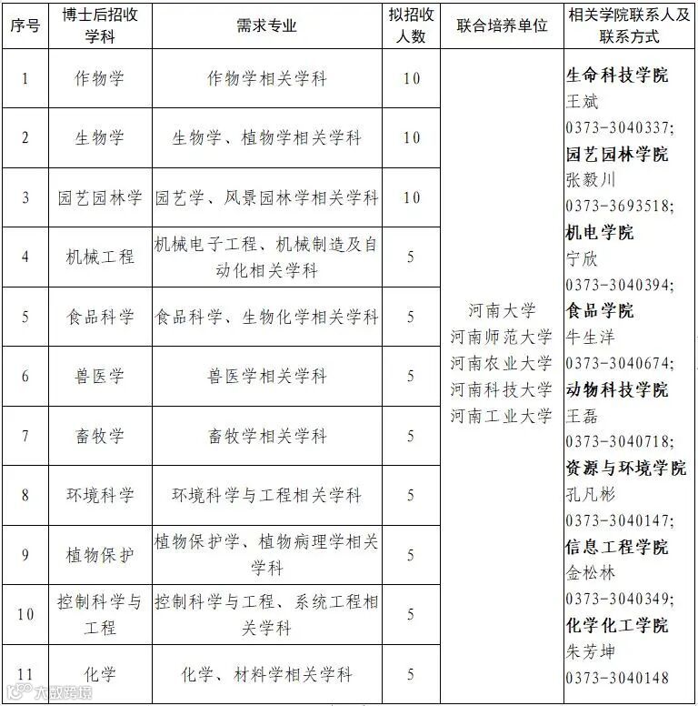 4.《河南科技学院博士后招收推荐汇总表》;
