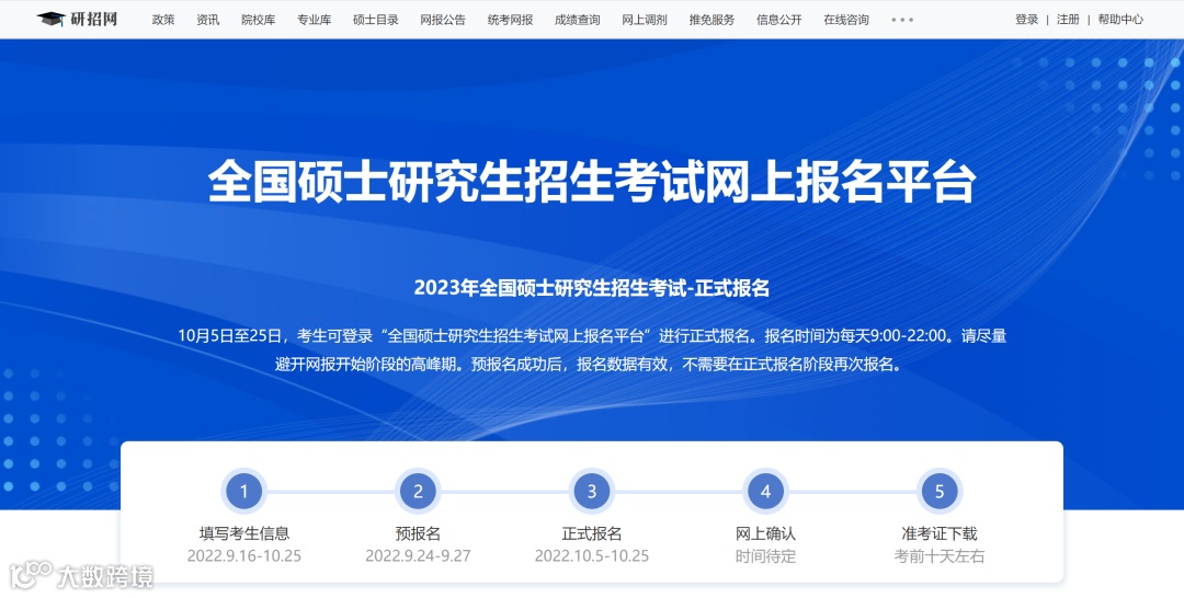 根据《2023年全国硕士研究生招生工作管理规定》要求,2022年10月5日至25日,考生可登录“全国硕士研究生招生考试网上报名平台”(https://yz.chsi.com.cn)进行研招统考网上正式报名,报名时间为每天9:00—22:00。