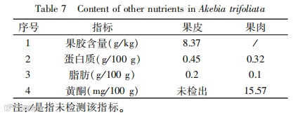Abstract: In order to analyze and evaluate the nutritional value of Akebia trifoliata fruit, Flame Atomic Absorption, Spectrometry, Liquid Chromatography, Fluorescence Spectrophotometry and other experimental methods was used to detect and analyze the nutritional components in the peel, pulp and seed of Akebia trifoliata. Based on the detection and analysis, it could be seen that Akebia trifoliata fruit had high nutritional value. Among them: The peel of Akebia trifoliata contains mineral nutrients of Mn and K,the contents of Mn and K were 0.645 and 342 mg/100 g respectively. The total amino acid content in the peel of Akebia trifoliata was 0.313 g/100 g, containing 15 kinds of amino acids, including 7 kinds of essential amino acids. The proportion of essential amino acids reached the ideal protein conditions proposed by WHO / FAO. The content of essential amino acids was less than that of pulp, and the nutritional value was lower than that of pulp. It contained a small amount of vitamin E, pectin, protein and fat. The seed of Akebia trifoliate contained many mineral nutrients, including K,P, Ca and Fe, with the contents of 586, 180, 191 and 2.85 mg/100 g, respectively. The seed of Akebia trifoliata was rich in many mineral nutrients, including Mn, Cu and Mg, with the contents of 4.63, 1.3 and 157 mg/100 g, respectively. The fatty acid content was 2.662 g/100 g, and the proportion of unsaturated acid was 76% .The pulp of Ahebia trifoliate contains Cu mineral nutrients and the content was 0.25 mg/100 g, was rich in Mn mineral nutrients and the content was 7.51 mg/100 g. The total amino acid content of Akxebia trifoliata was 0.419 g/100 g, containing 16 kinds of amino acids, including 8 kinds of essential amino acids. The proportion of essential amino acids reached the ideal protein conditions proposed by WHO / FAO, the content of essential amino acids was balanced and the nutritional value was high small amounts of vitamins, fats, proteins and flavonoids.