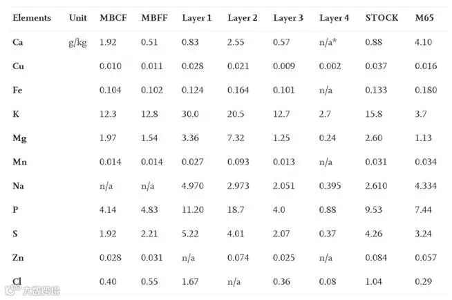 结果2:如表1所示,矿物含量是食品成分的一个关键属性,含量高低依赖于分馏和提纯过程。因此,我们分析了MBFF和DMBFF的矿物含量,这是由空气分级得到的。类似地,我们分析了MBFF分散体系得到的第1 - 4层的矿物含量,第1层超滤得到的原液,以及参考商品绿豆蛋白粉(标记为M65)。除粉末样品外,其他液体或半固体样品在分析前冷冻干燥。