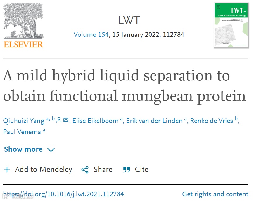 1、通过温和杂交纯化,从绿豆中获得了绿豆蛋白。