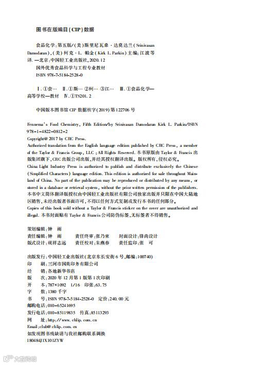 3.本书由江南大学食品化学领域的专家和学者进行翻译,准确、权威。