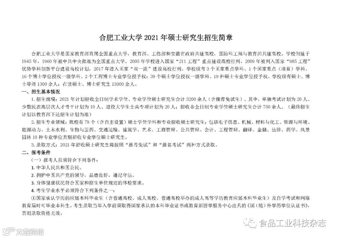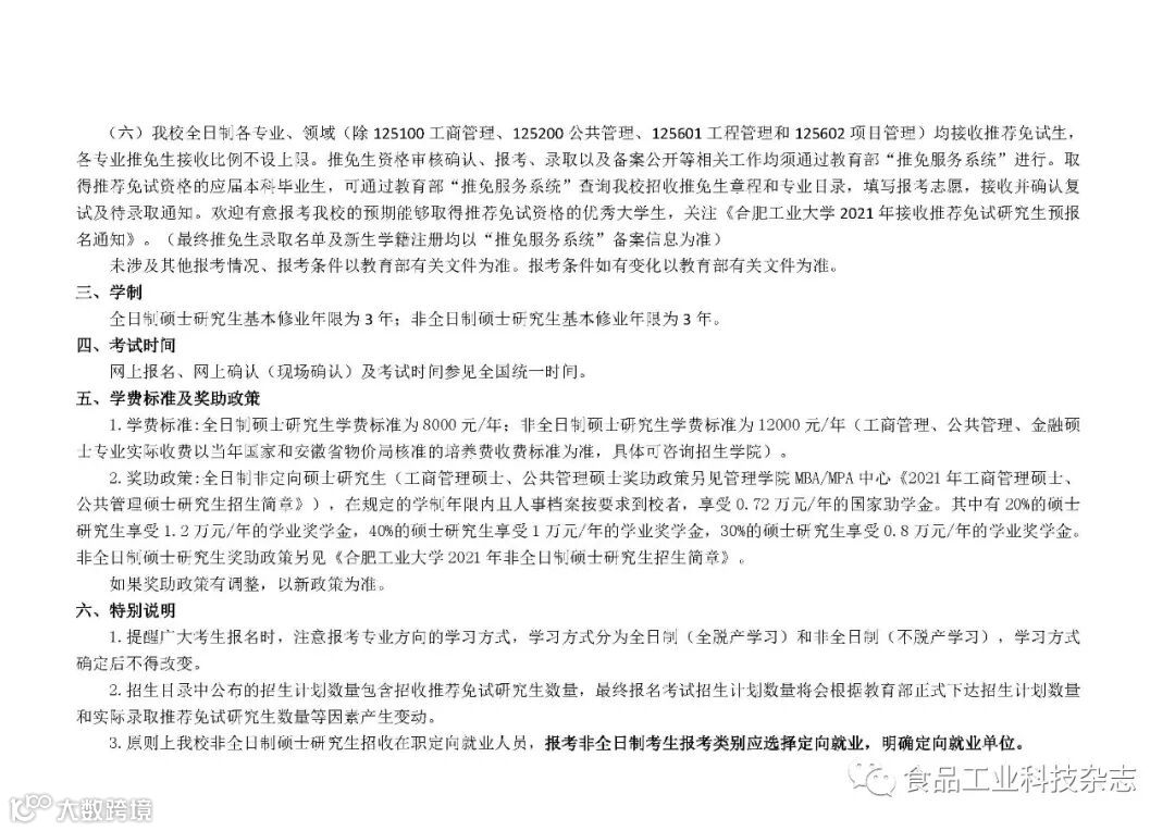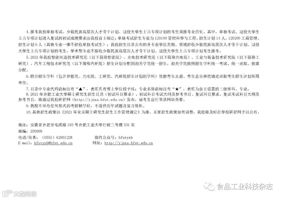 关于发布合肥工业大学2021年硕士研究生招生目录、考试大纲及参考书目的通知
