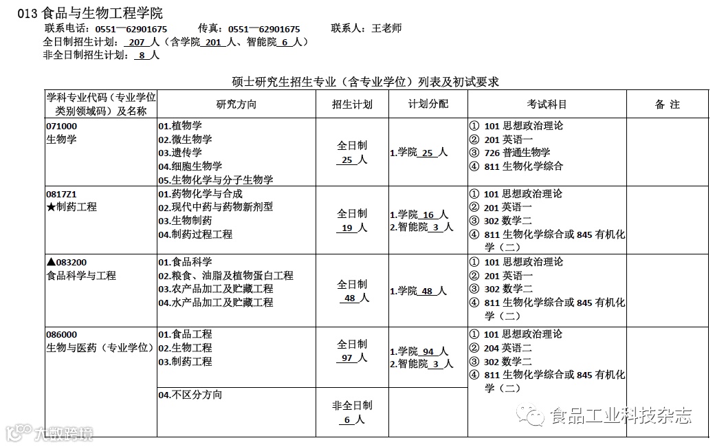食品与生物工程学院招生信息