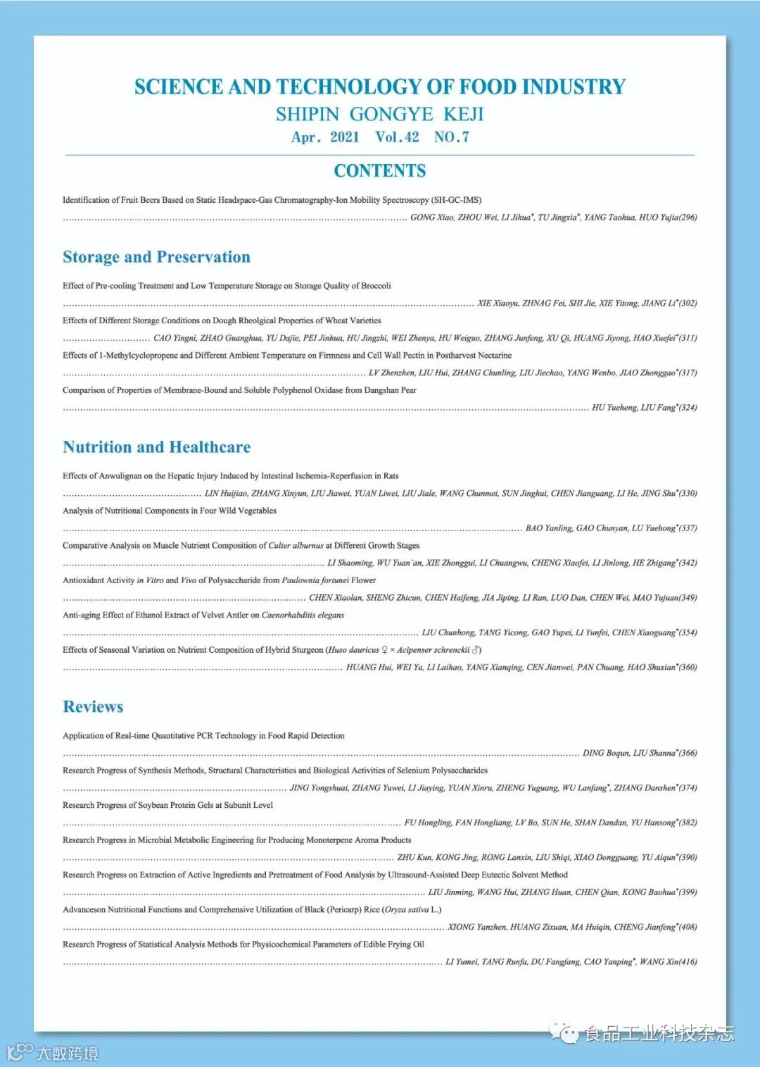 《食品工业科技》官网及微信公众号免费OA阅览。