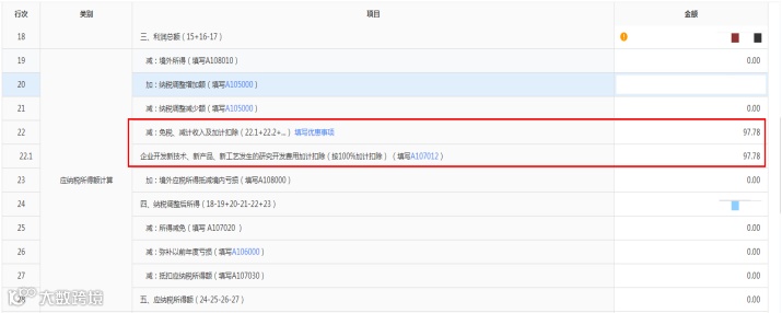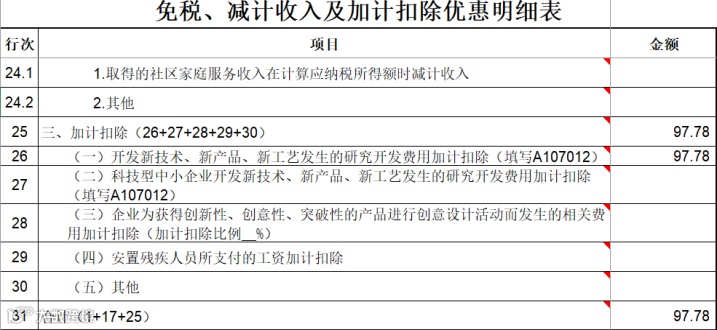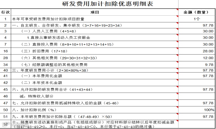 研发加计扣除的金额在主表带出来,注意表格中是以万元为单位。