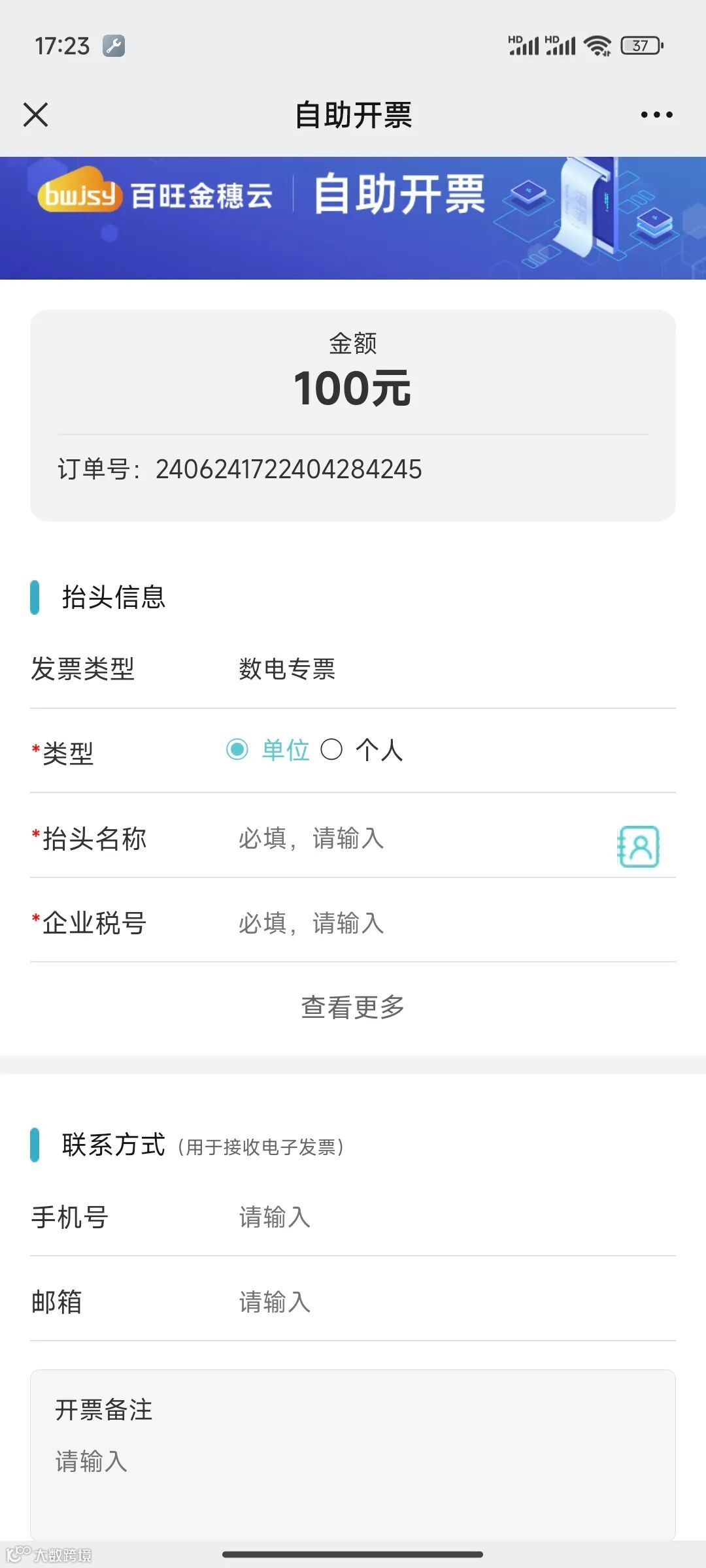 2、由消费者确认开票金额后填写发票抬头、确认开票;