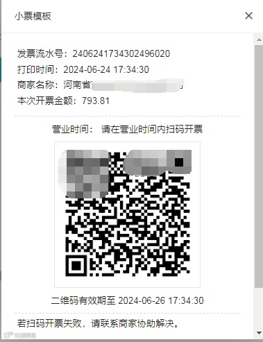2、小票二维码具有开票期限,超期后可联系企业进行延期处理。