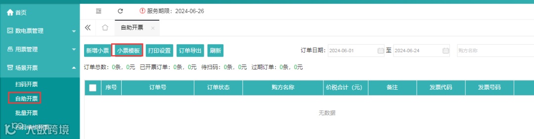 登录“百旺金穗云-云开票”系统,点击【场景开票】-> 【自助开票】->【小票模板】。如下图: