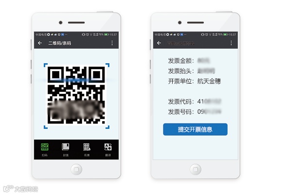 消费者使用“微信/支付宝”扫一扫功能扫描小票二维码,提交发票抬头。如下图: