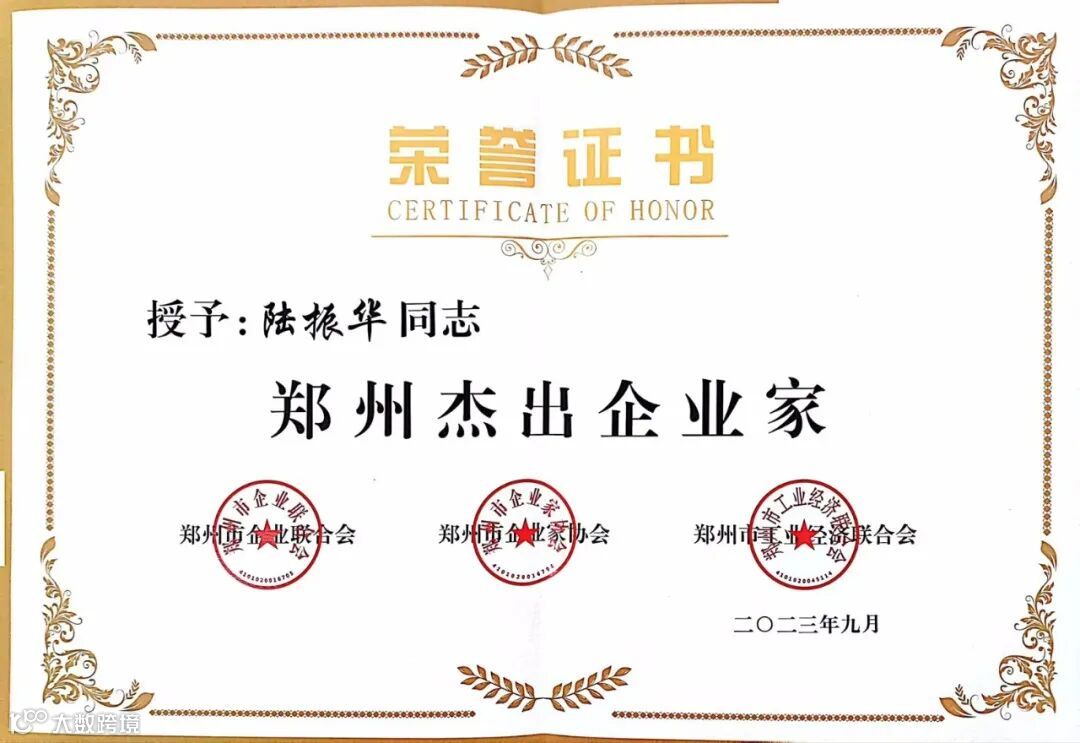 9月13日,由郑州市企业联合会、郑州市企业家协会、郑州市工业经济联合会主办,主题为“弘扬优秀企业家精神,增强发展内生动力”的2023年全国企业家活动日郑州分会场活动会议在黄河迎宾馆举行。大会对在生产经营管理、转型创新成效、履行社会责任等方面有突出贡献的企业和企业家进行了表彰,我公司董事长陆振华荣获“郑州杰出企业家”称号。