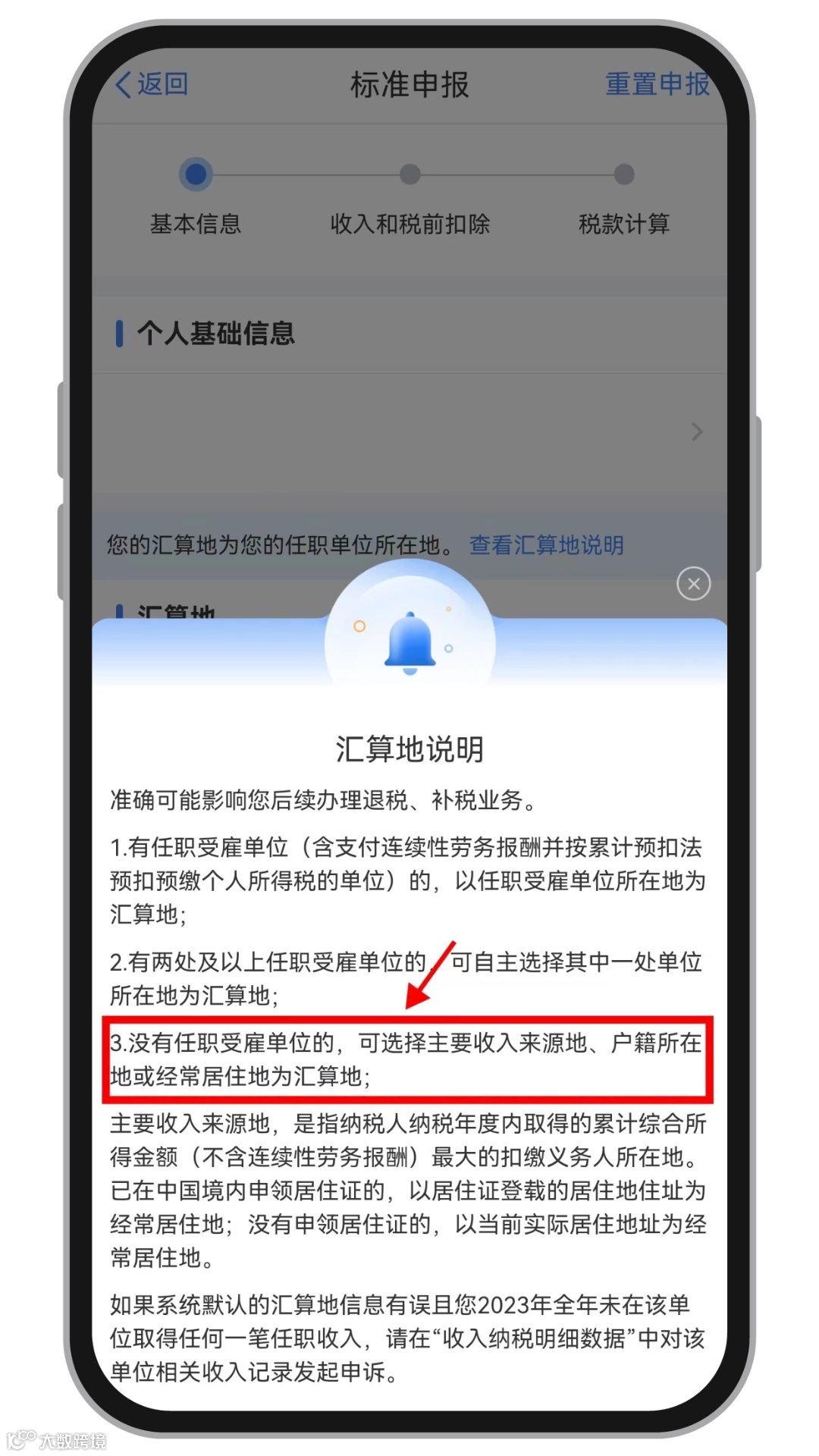 若无任职受雇单位,可选择主要收入来源地、户籍所在地或经常居住地作为【汇算地】。