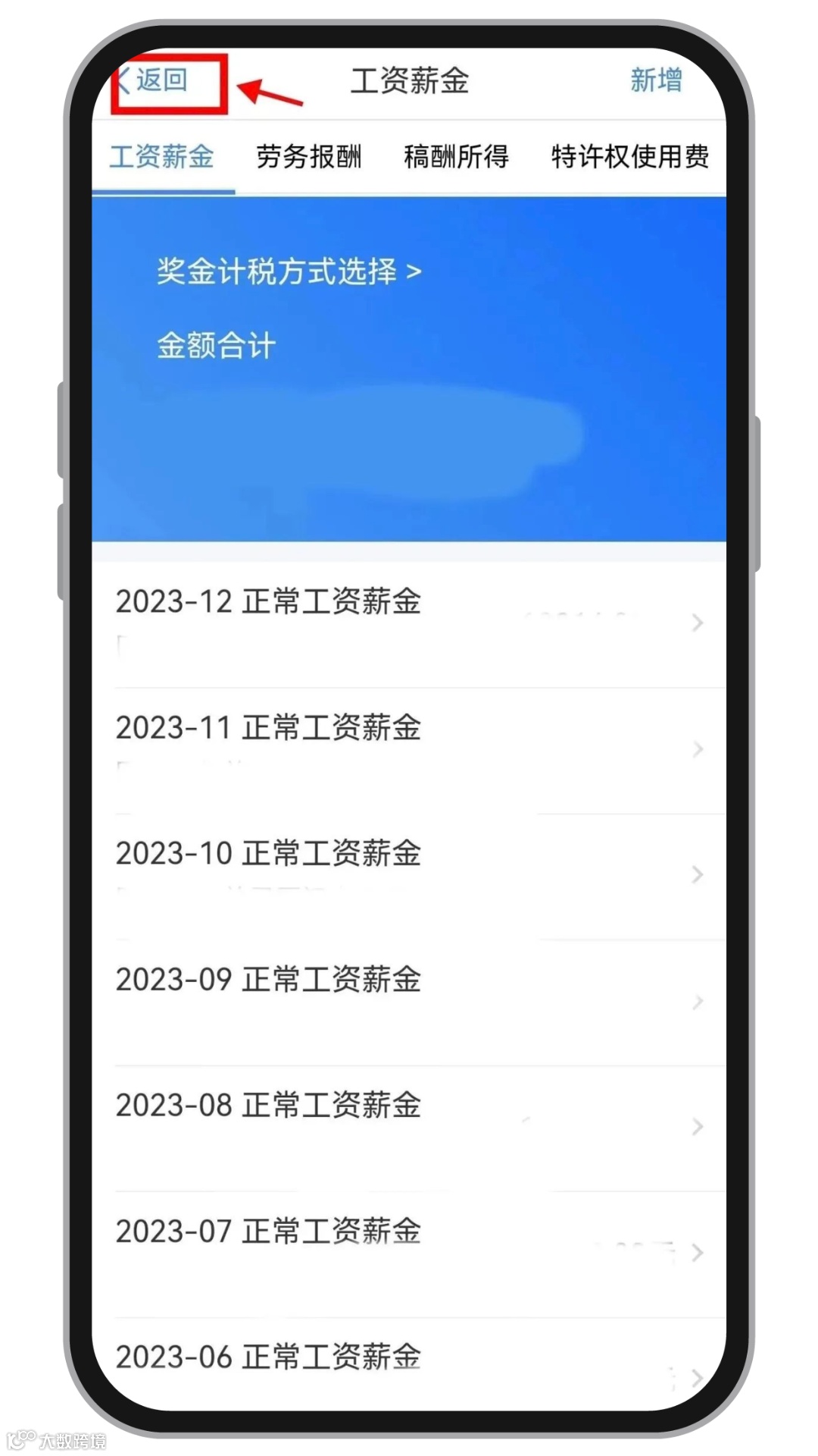 选择完毕后,点击【返回】回到【收入和税前扣除】页面继续申报。