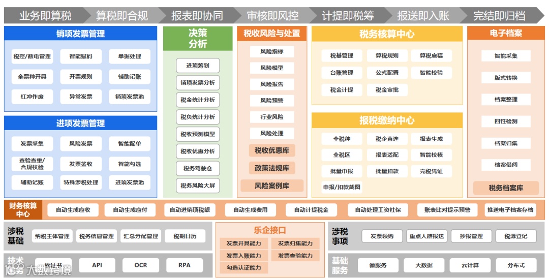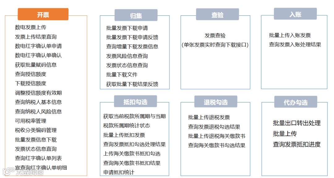乐企目前的主要功能包括:开票、归集、查验、入账、抵扣勾选、退税勾选、代办勾选等模块。
