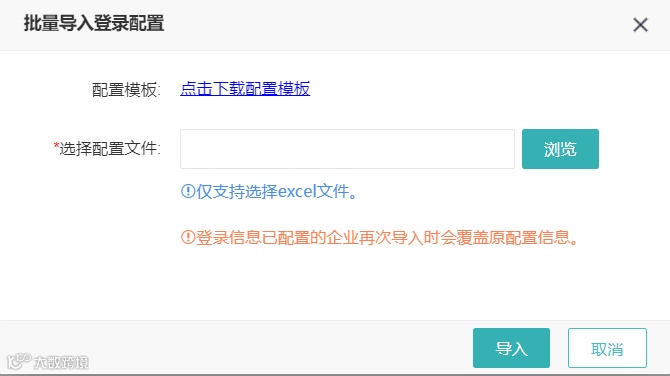 ②进行申报任务前,需配置工商系统的登录配置信息。目前系统支持【批量导入登录配置】和手工录入【登录配置】,如下图所示:
