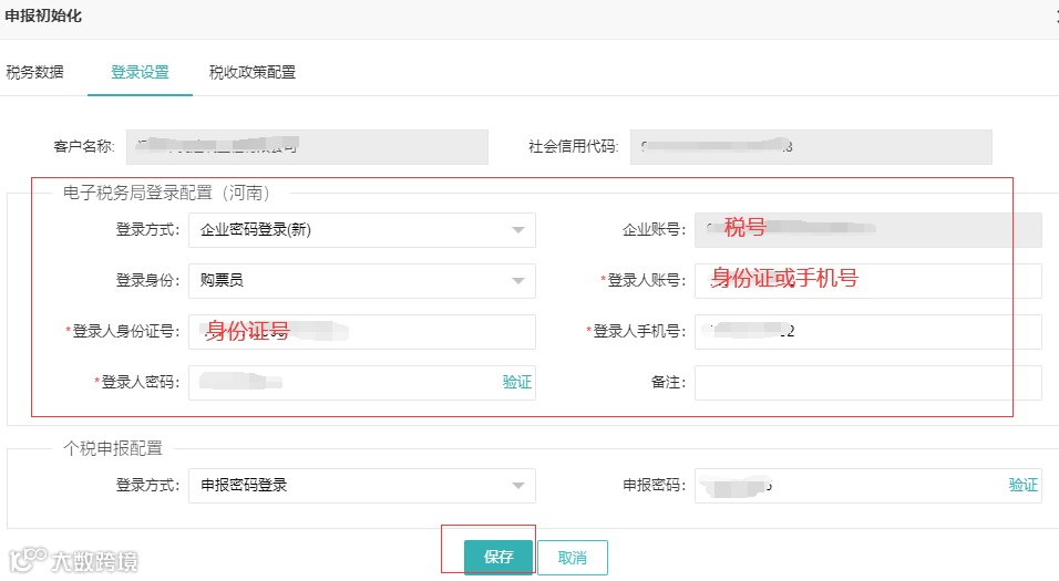 ②登录人账号设置一下身份证号或手机号;注意:(此登录账号与手工登录电子税务局的登录账号一致);