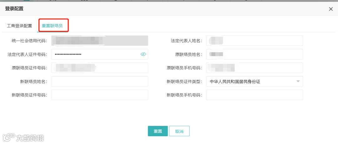 ③如需变更联络员,可在【登录配置】-重置联络员模块变更新的联络员信息。