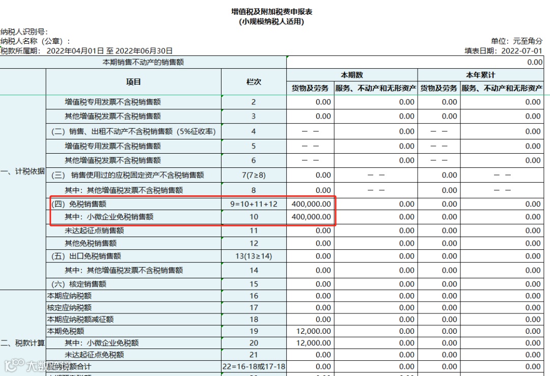 某商贸公司是小规模纳税人,主要从事办公用品类商品的销售业务,2022年第二季度取得收入40万,有25万未开具发票,那么该企业在申报增值税时,这25万元应该如何处理呢?如图所示:小规模纳税人,季度未超45万,直接全部收入填列在小微企业免税销售额栏次即可。详见图二:
