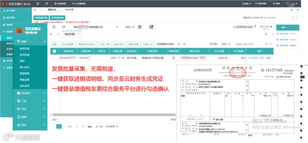 百旺金穗云基于多年税控服务及电子税务局建设经验,自主研发托管云开票,自建智能做账引擎,创新搭建预报税平台,实现了集中开票,智能做账,批量一键报税,改变了传统代账行业工作模式,大大提高了财务工作者的工作效率。