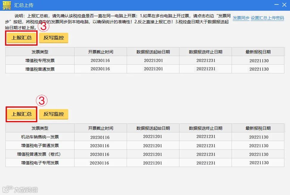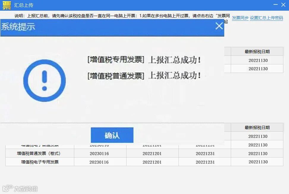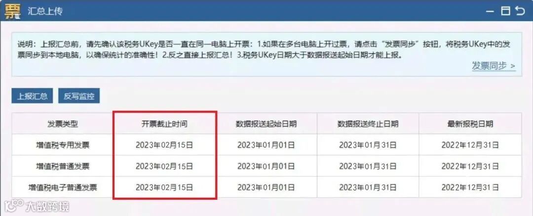 操作流程:重新打开汇总上传界面,查看各发票类型开票截止时间是否更新到下月中旬,若更新,说明操作成功。