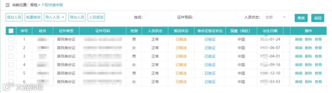 人员信息采集,实时在线校验员工身份证信息,在线报送员工自然人信息。