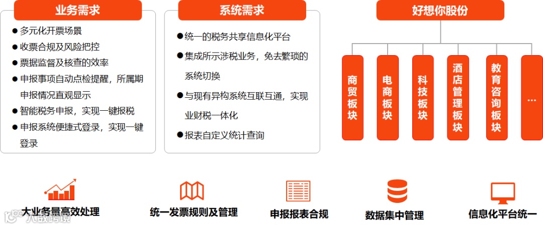 公司深入好想你集团开展调研,围绕其在不同板块的涉财涉税环节进行详细的业务需求梳理,具体展示如下: