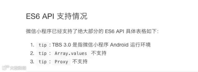 此外,开发者可以在小程序中使用ES6的绝大多数API,JavaScript版本兼容问题不用再考虑了。