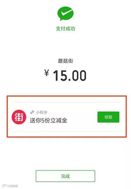 1、 在小程序中支付成功后,会生成小程序的社交立减金,“邀请好友一起领取”后就能即刻领取;