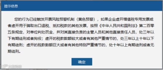 开票软件会根据您的开票信息按照税务机关设定的风险等级给您相应的风险等级提示: