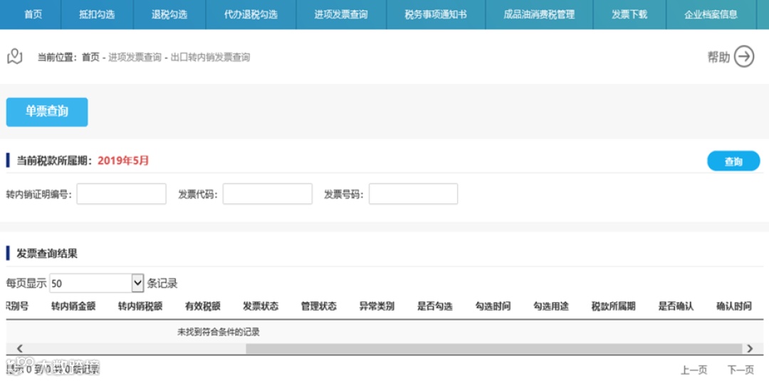 查看当期可勾选和未到期的出口转内销发票明细信息(仅针对于进项发票)