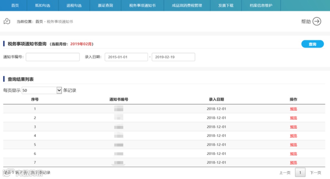 该功能主要向用户提供税务事项通知书的查询、下载功能。目前,仅开放收到异常抵扣凭证的相关税务事项通知书。