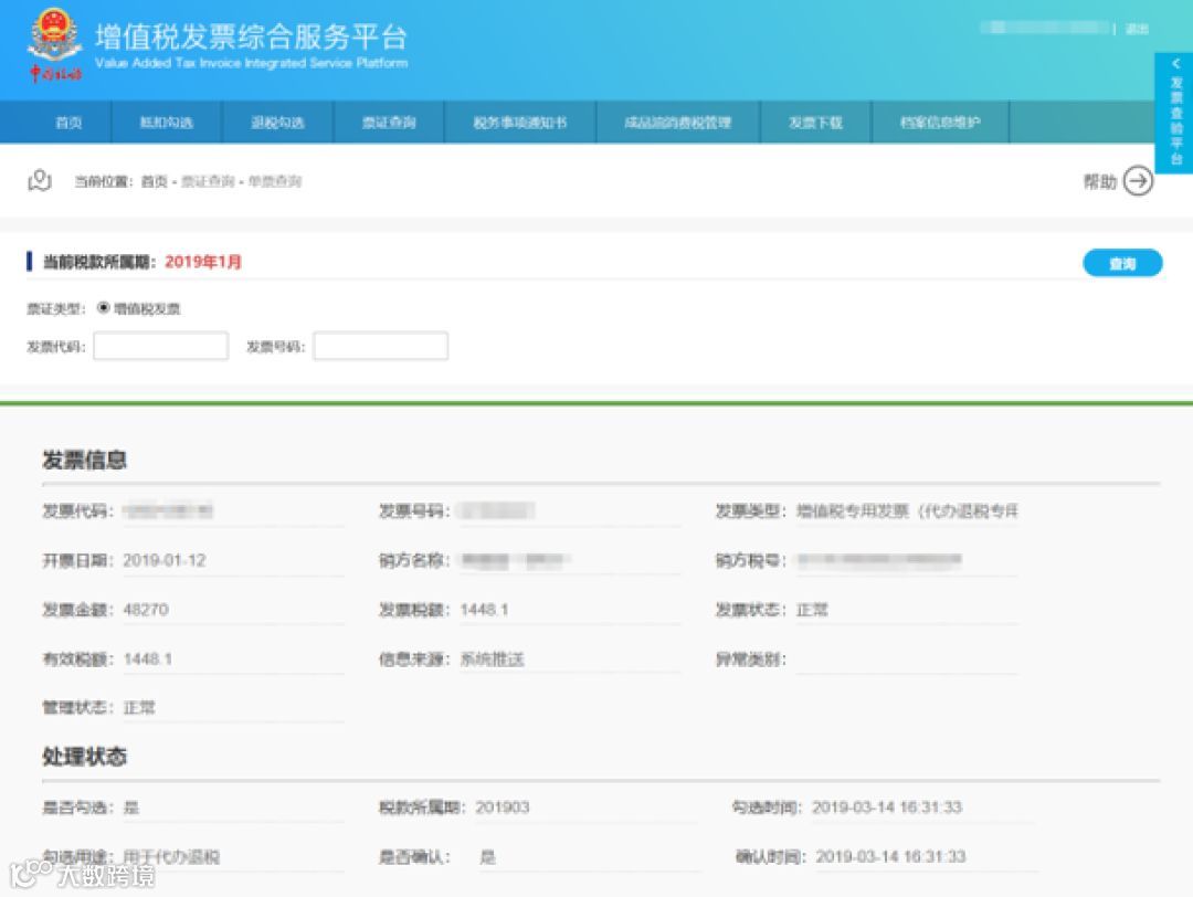 查看发票认证情况及明细信息(仅针对于进项发票明细查询)