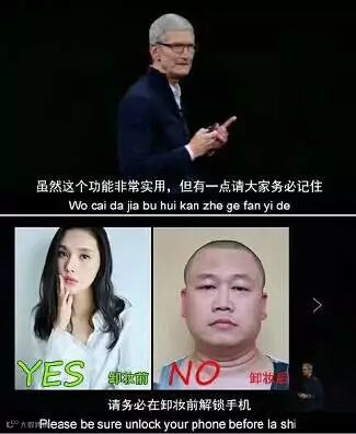 前几天苹果发布iPhone X 刷脸解锁功能