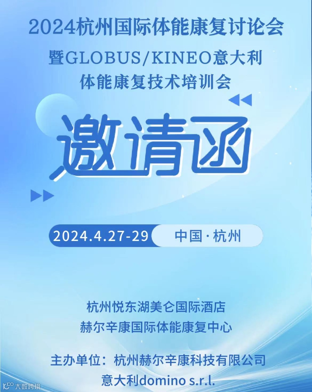 这周末,杭州赫尔辛康科技有限公司将携手合作十年的意大利GLOBUS学院共同举办国际体能康复讨论会和GLOBUS/KINEO意大利体能康复技术培训会。