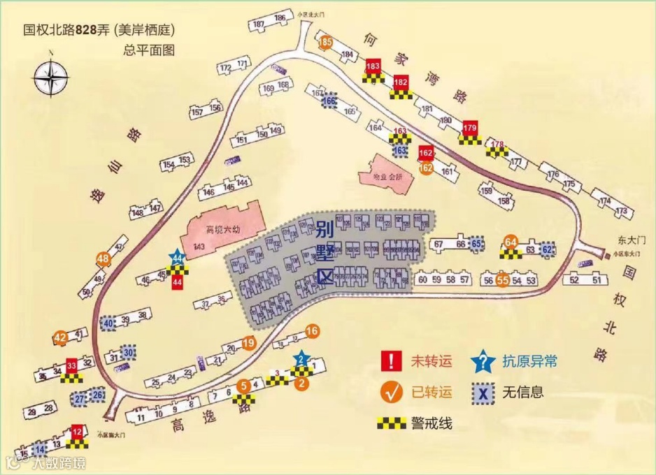 疫情时期,小区用不同颜色的图块来呈现封控信息