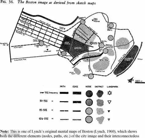 凯文林奇对波士顿的城市认知地图,包含城市意象的五要素