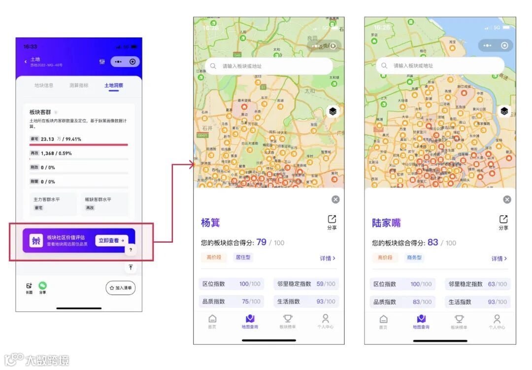 此外,投资清单详情页末尾还嵌入了一个小彩蛋,如果您在上海和广州有买房需求,也可以使用脉策开发的另一款小程序“策测”,帮助您更好的理解您的城市板块评分和优劣势。