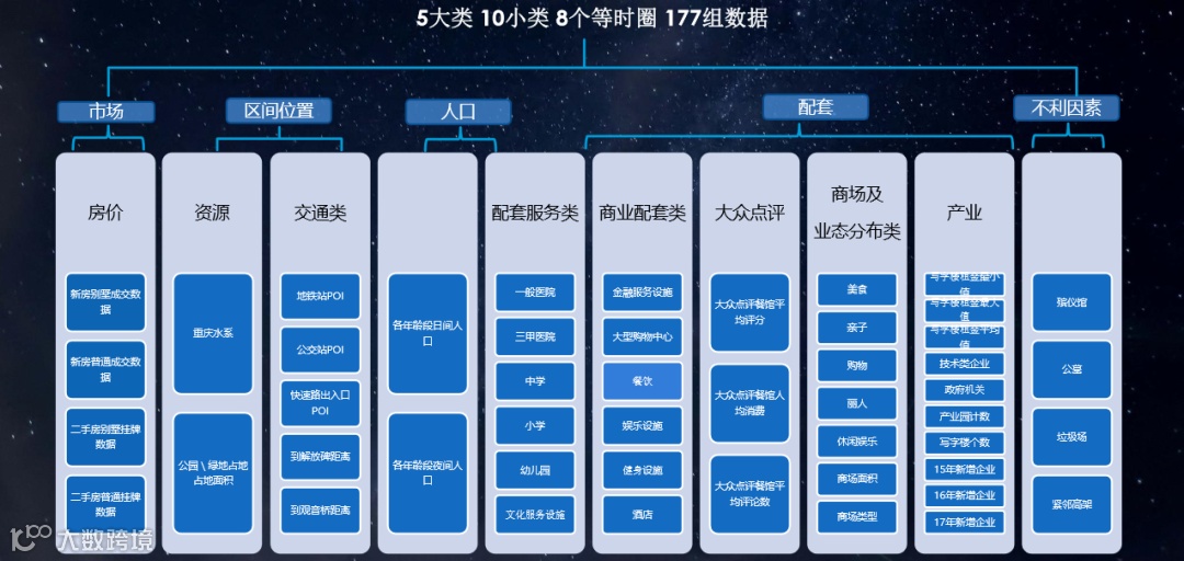 在重万的价值预测模型中,使用了包括市场、区间位置、人口、配套、不利因素等在内的5大类10小类共177组要素。