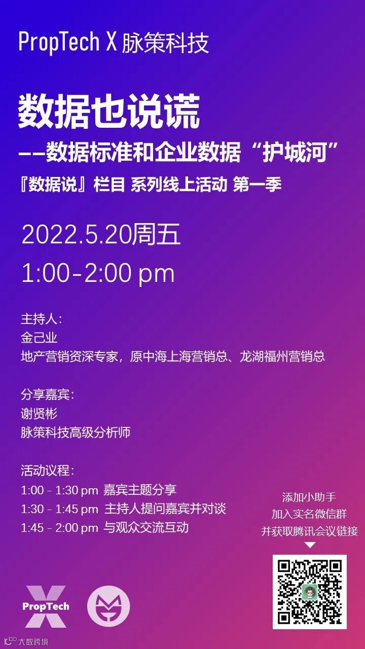 PropTech X 与 脉策科技 作为地产科技的奉行者,地产与不动产的同行者,在4月至6月,我们将围绕数据与不动产,联合奉上「数据说」栏目系列线上活动第一季,分享行业数据洞察、数据知识科普与数据驱动的工作方法。