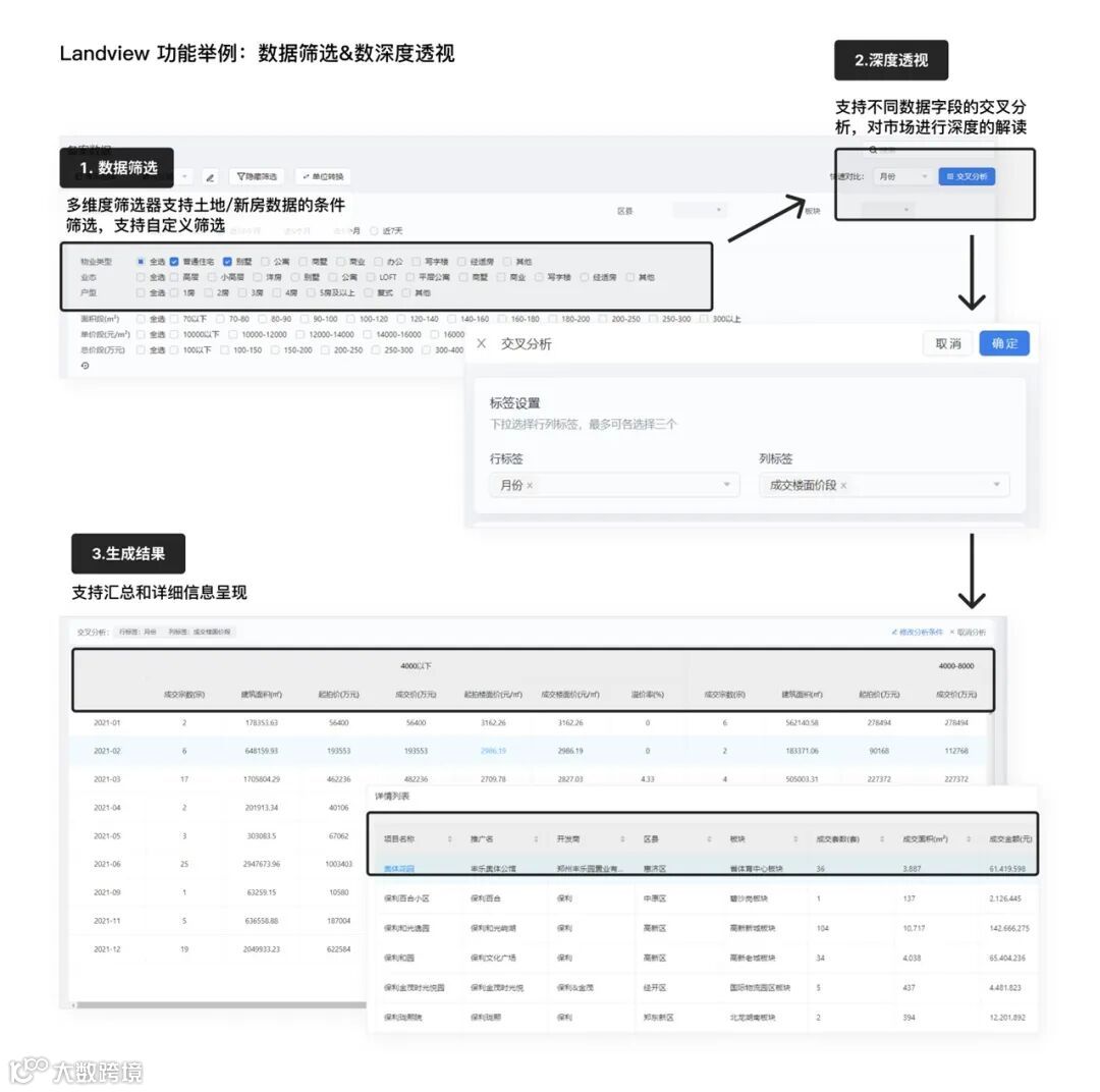 在数据资产方面,“数据护城河”整合了新房市场、二手房市场、土地、人口、产业、配套设施、商业、市场指数等八大类数据,覆盖范围多达120余座城市,并拉通了自有的案场数据和调研数据。