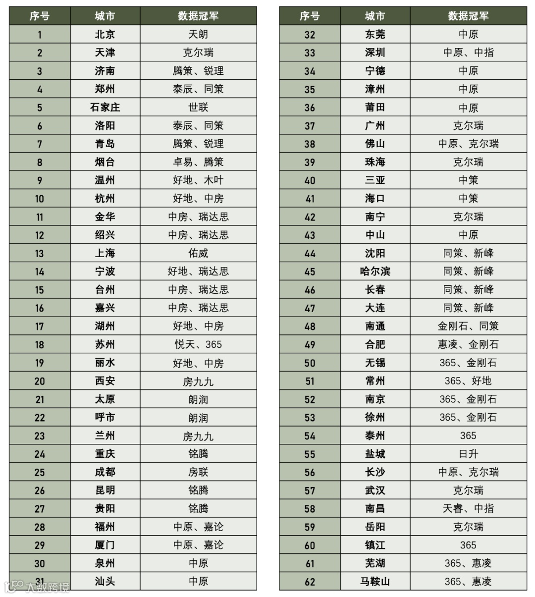 结合多年来服务于标杆性房企用户的经验和调查,我们罗列了62座城市的新房数据“隐形冠军”。