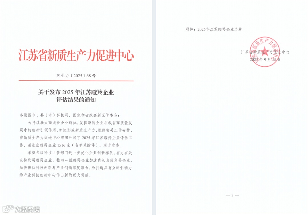 图:“2025年江苏瞪羚企业”评估结果通知及