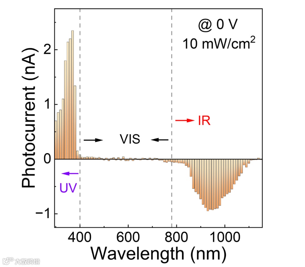 随着信息技术的发展,对多功能光电探测的需求迅速增长。大多数光电探测器(如 PN 和 PIN 结)的适应性有限,因为它们只能对特定波长的光产生单向光电信号。而具有双极光响应输出能力的光电探测器在集成度和功能性方面具有优势,在智能传感器、人工神经系统和光学逻辑门中具有潜在应用。过去,人们通过设计背靠背二极管、调整能带排列和耦合多物理效应等方法,研究了在异质结器件中产生双极光响应的途径。现有研究主要通过调控不同光谱区域的竞争机制来实现光电流极性控制。多数研究采用钙钛矿、CdSe和SnSe等宽带隙材料构建多层异质结,这些材料对可见光具有高吸收和强光响应特性。传统双极响应光电探测器通常对可见光有明显响应。而抗可见光干扰能力强的探测器可在存在背景噪声的特殊环境中工作,既无需复杂光学滤波器,又能简化系统设计并降低成本。因此,开发对可见光盲区的新型双极光电探测器具有重要应用前景。