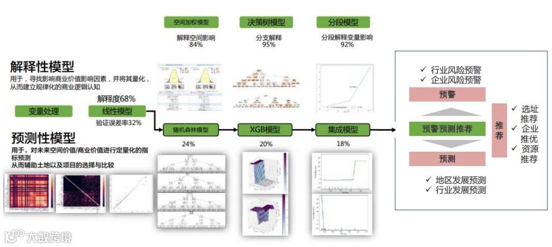 集合了经济统计学、地理信息科学、数据科学和计算机人工智能等的多学科分析算法模型, 并基于算法模型提供项目体征监测、项目预警、预测和推荐。