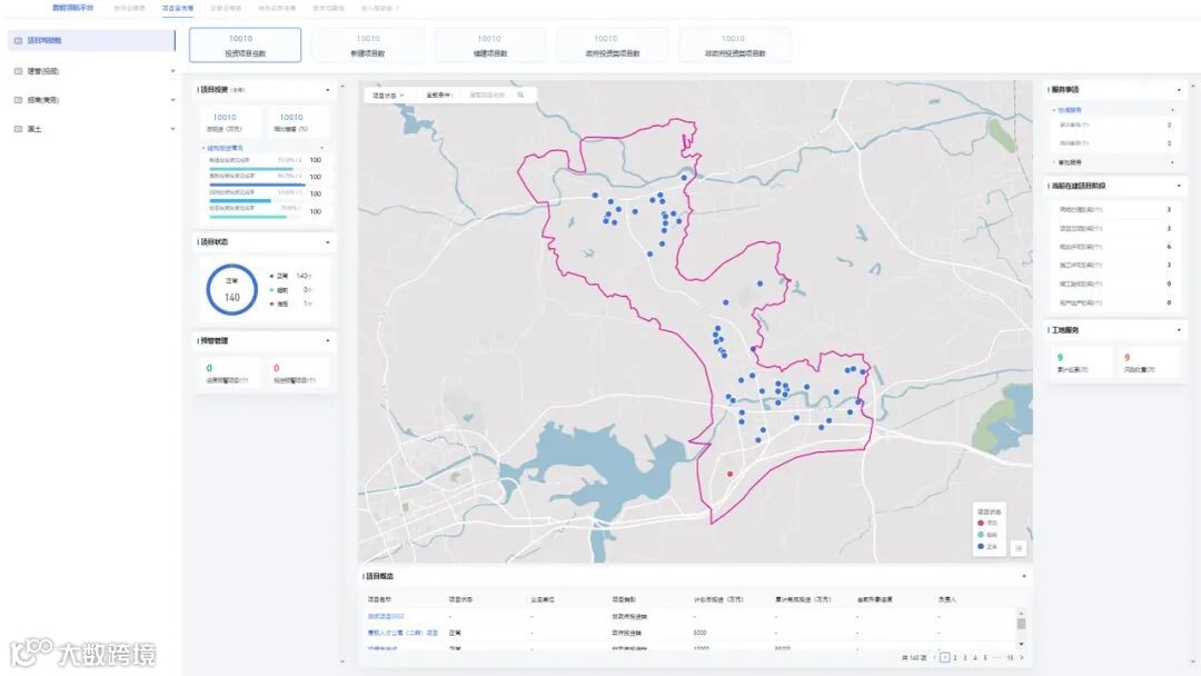 为投资服务部门提供在建项目全流程管理工具,进行项目进度监控,实现“拿地即开工”,并进行项目履约评估和档案留存。