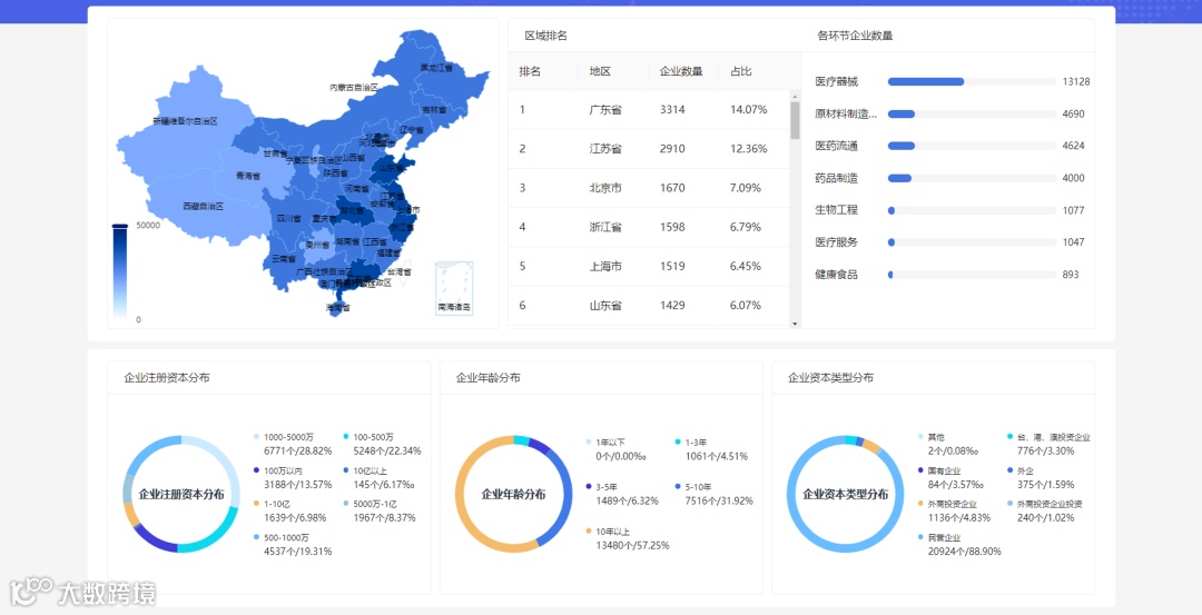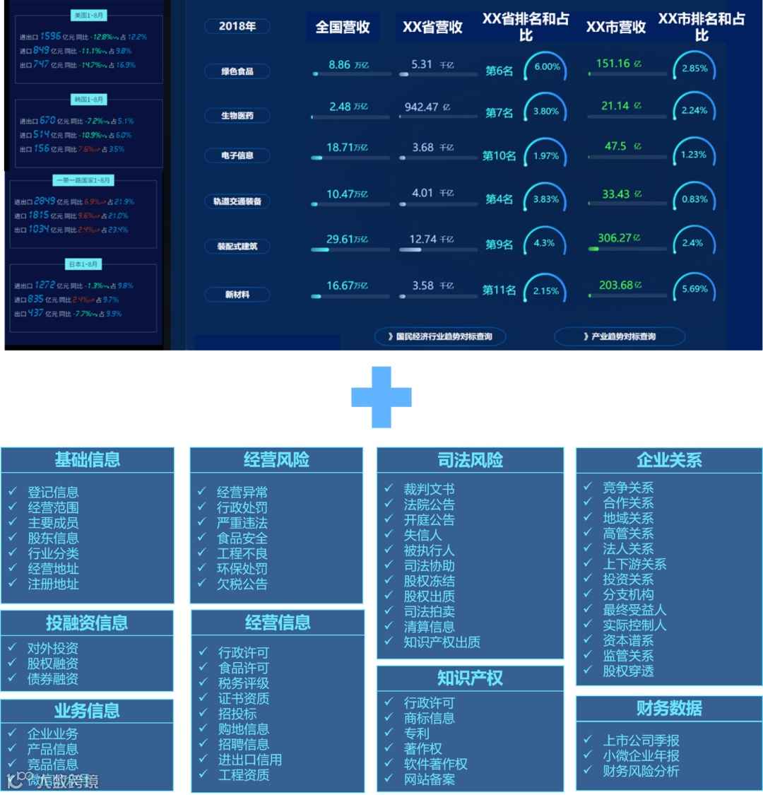 集成丰富的产业经济数据资源,包括内湖外海的产业和企业经济数据,并支持第三方数据库拓展。