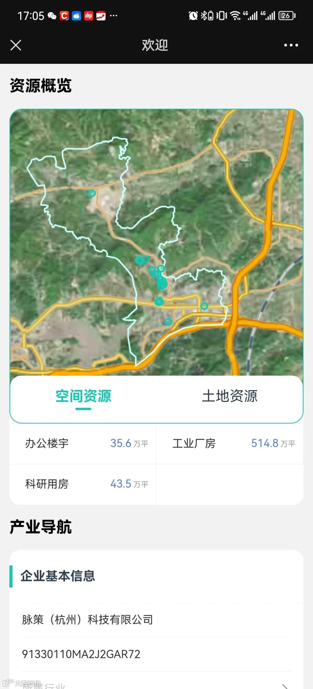 挂接空间载体的多维数据底座,包括二维地图和三维建筑模型,解决地、楼、企、人四项分离造成的数据链断裂,建立“人在企中,企在楼里,楼在地上的”关联性产业空间数据库。