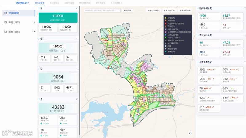 为产业发展部门建立空间数据底座,协助土地、楼宇、企业、人才的全要素精细化管理,并基于空间和行业进行产出总量和效益的跟踪监测,为产业准入、退出、精准扶持提供支持。