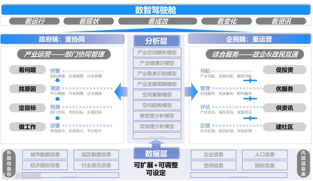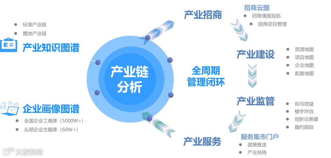 产品涵盖从产业分析、招商、建设、监管、服务的全周期管理应用,形成高质量发展的闭环应用体系。